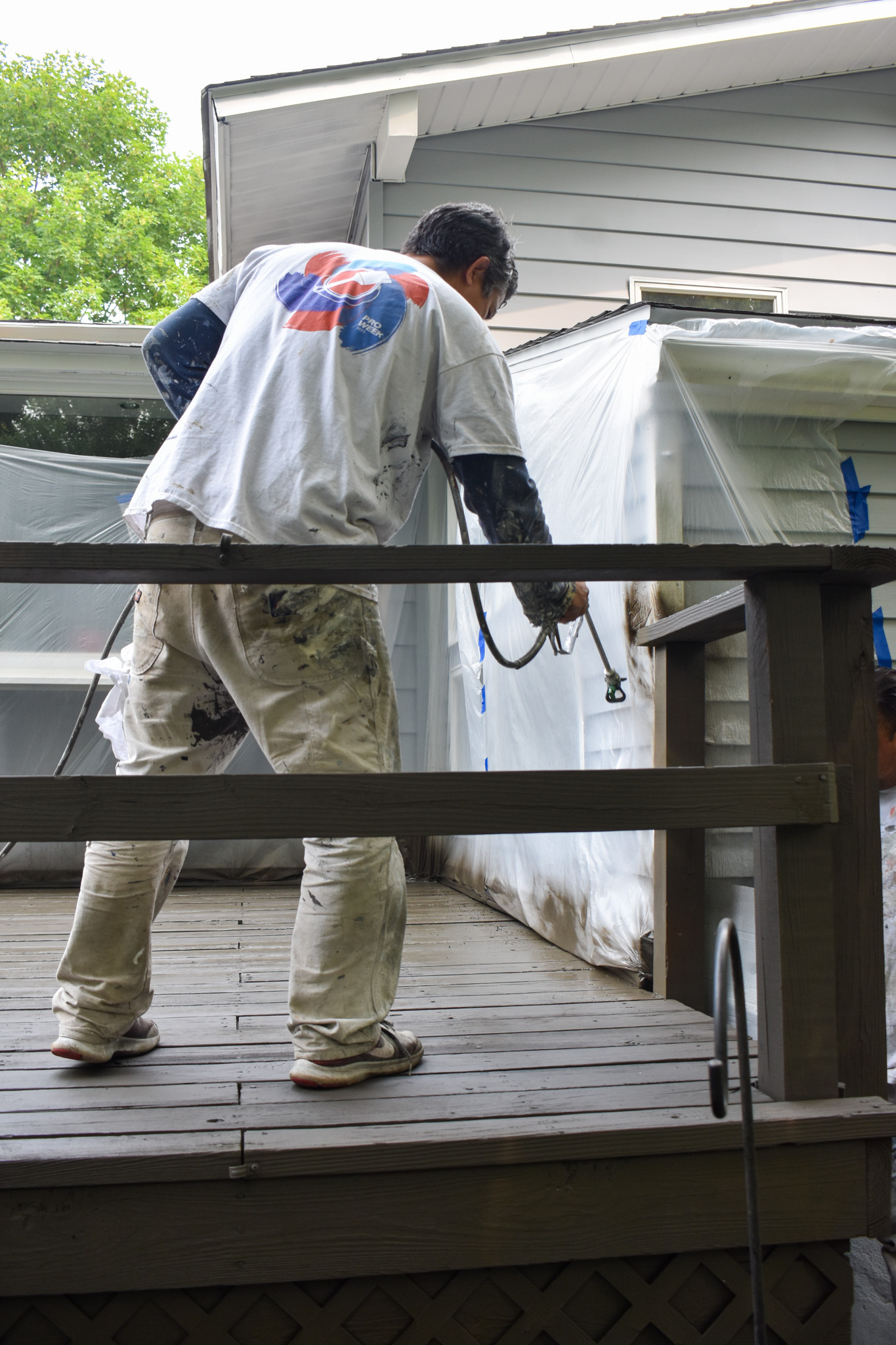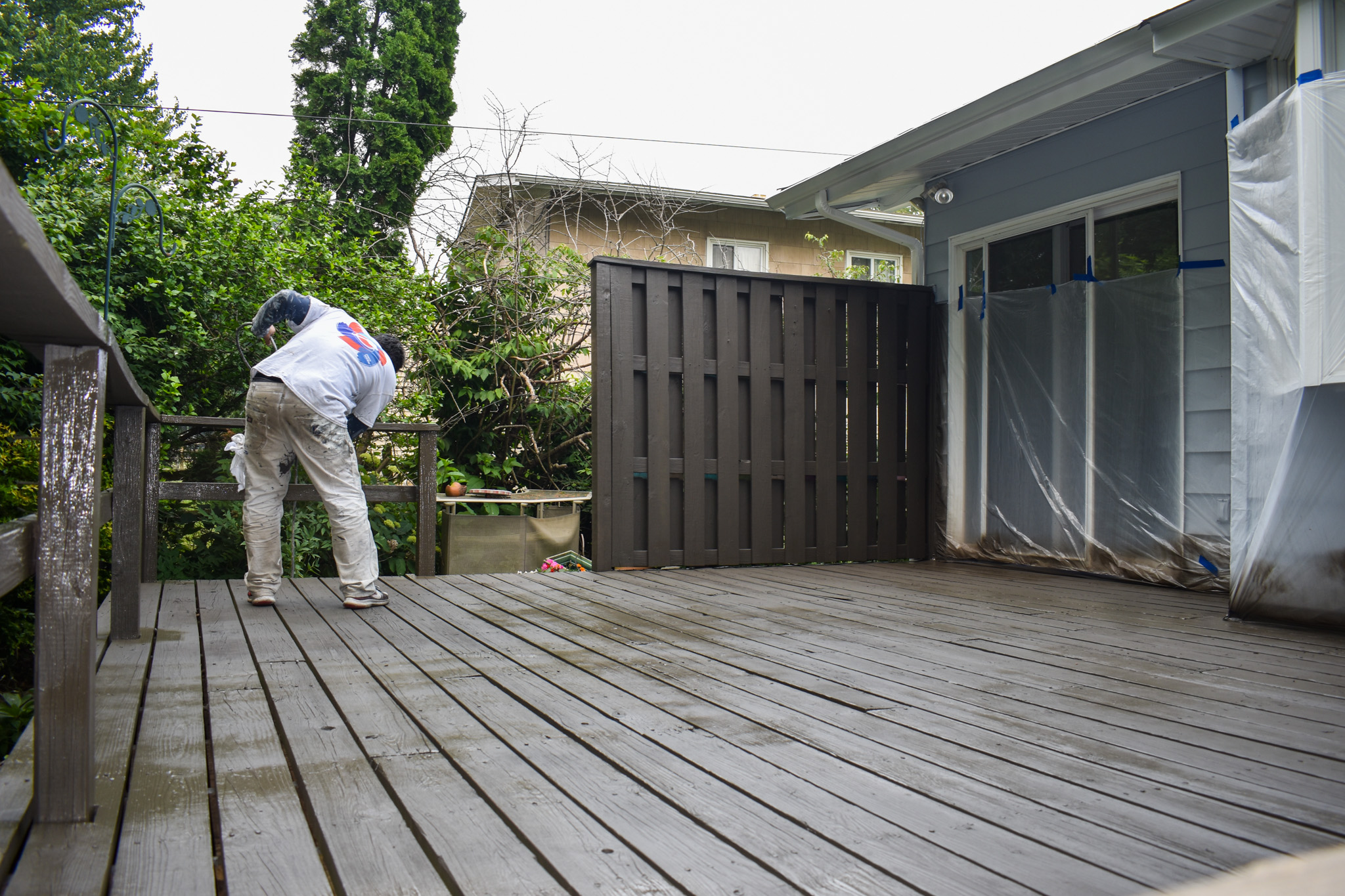 We power wash the decks to make sure that it is free from dust and mildew. We make sure to diagnose the state of the surface — be it wood or concrete — to ensure the integrity of the material is not compromised. We then apply Sherwin William’s Deck Over, which is the best quality paint out there with sealer and paint to protect the deck against inclement weather and direct sunlight. We can guarantee it’ll last many years.